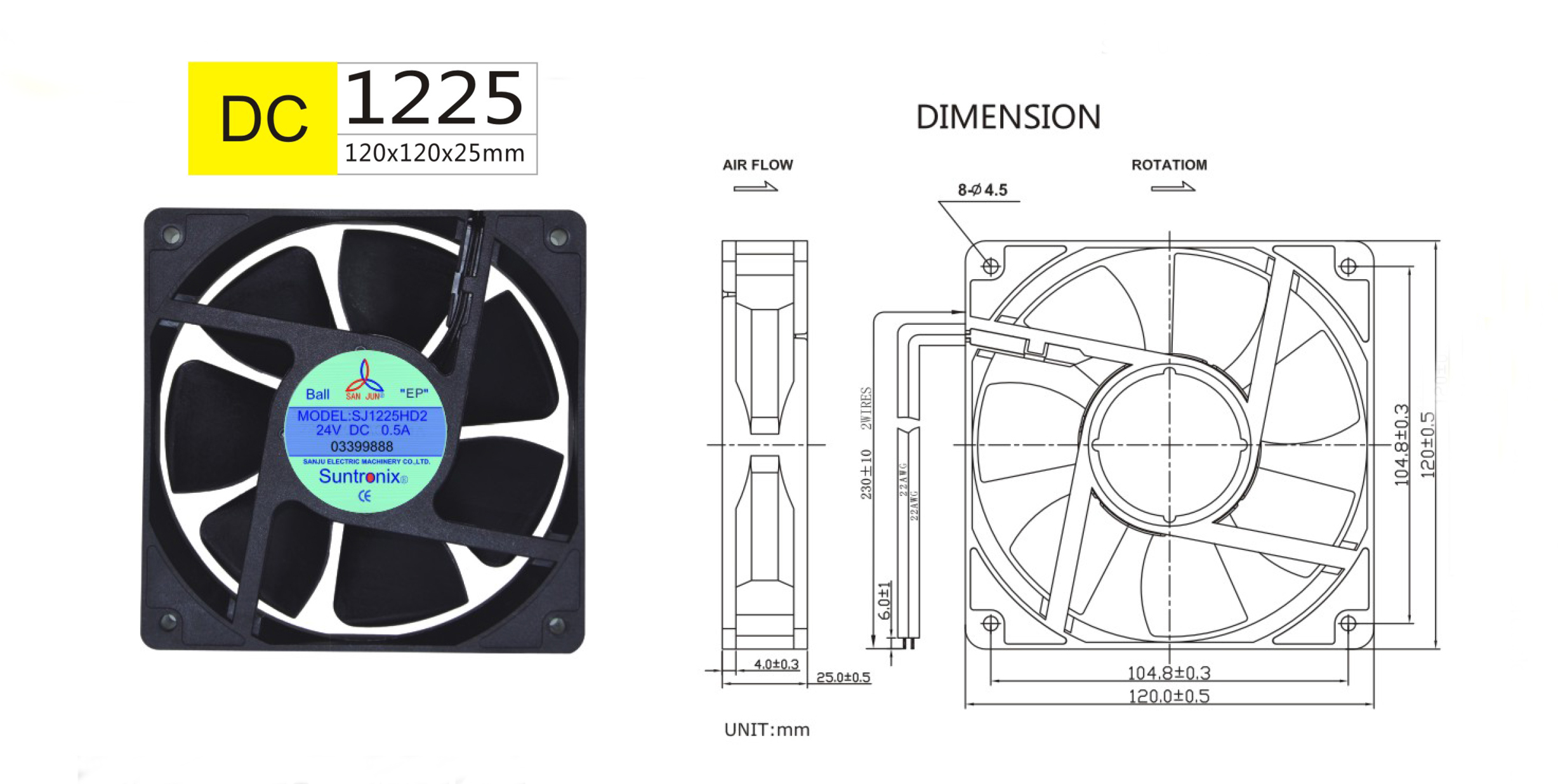 三巨電機(jī)散熱風(fēng)扇廠家專(zhuān)注如AC軸流風(fēng)扇,DC直流散熱風(fēng)機(jī)生產(chǎn)尺寸:120x120x25mm